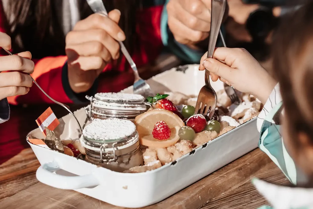 Genießen Sie in Ihrem Skiurlaub in Wagrain kulinarische Vielfalt – vom Frühstück im Apartment bis zu feinen Abendmenüs im Restaurant vaMoos, frische Pizzen von Luigi’s und regionalen Spezialitäten in den Skihütten des Snow Space Salzburg – Ski Amadé.